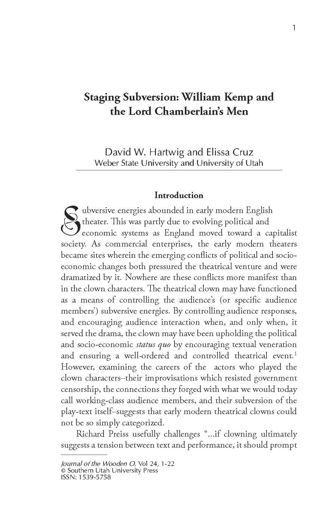 The Journal of the Wooden O (JWO) is a peer-reviewed academic publication focusing on Shakespeare studies. The editors invite papers on topics related to Shakespeare, including Shakespearean texts, Shakespeare in performance, the adaptation of Shakespeare works (film, fiction, and visual and performing arts), Elizabethan and Jacobean culture and history, and Shakespeare’s contemporaries.