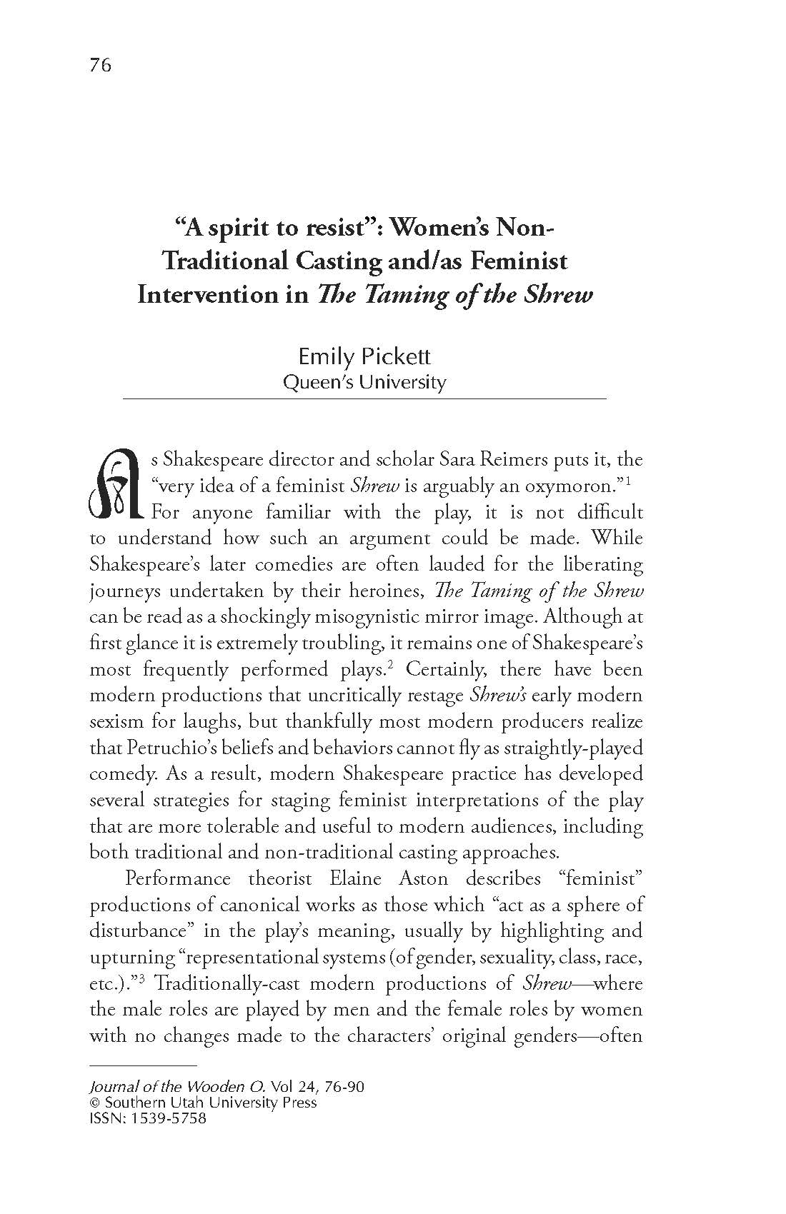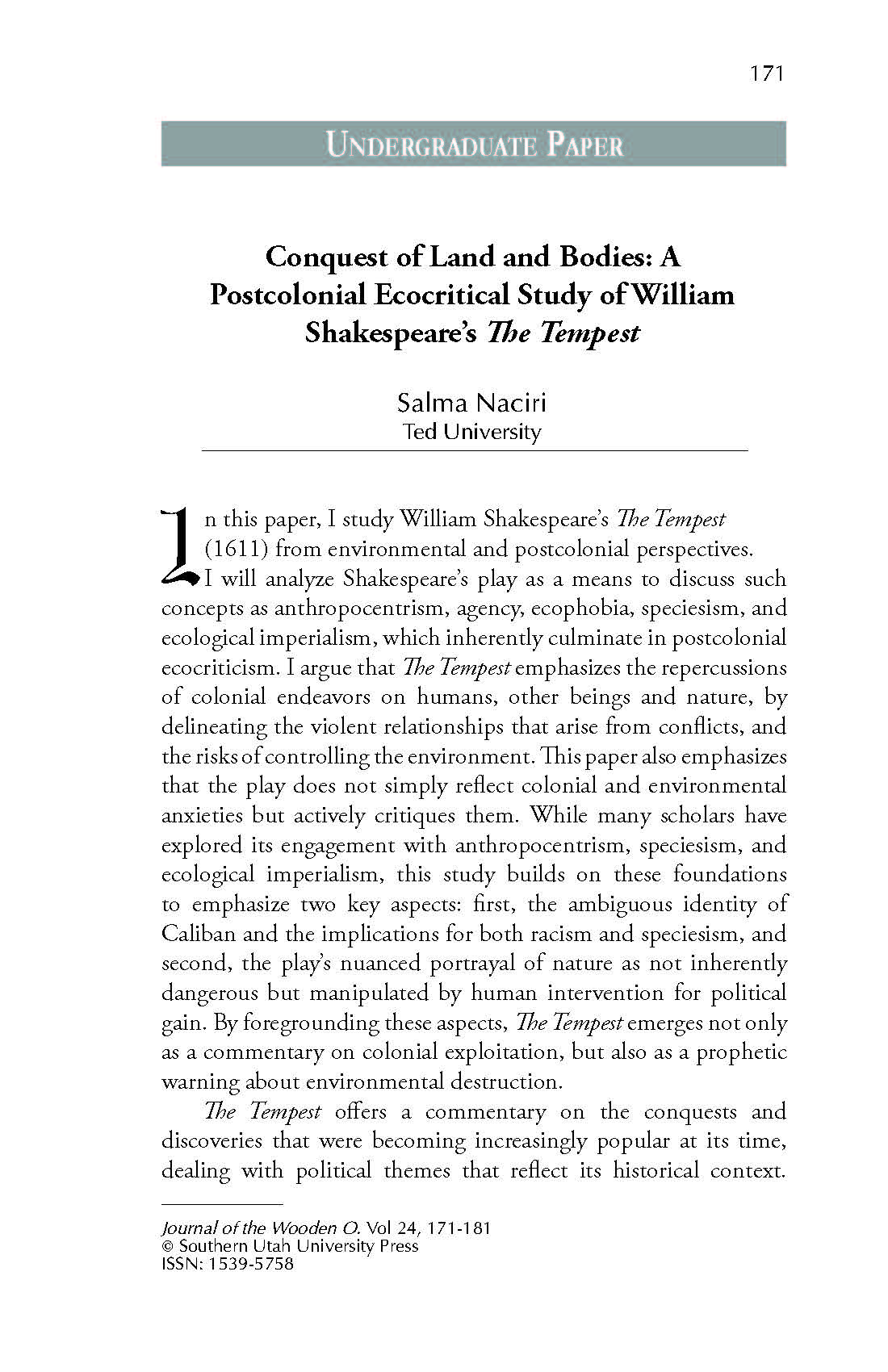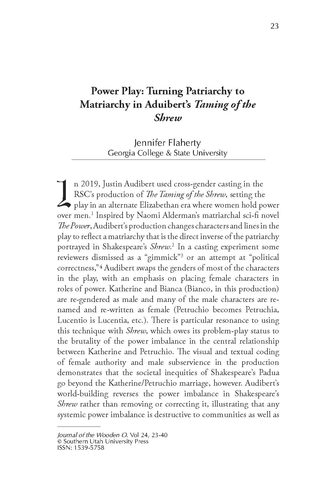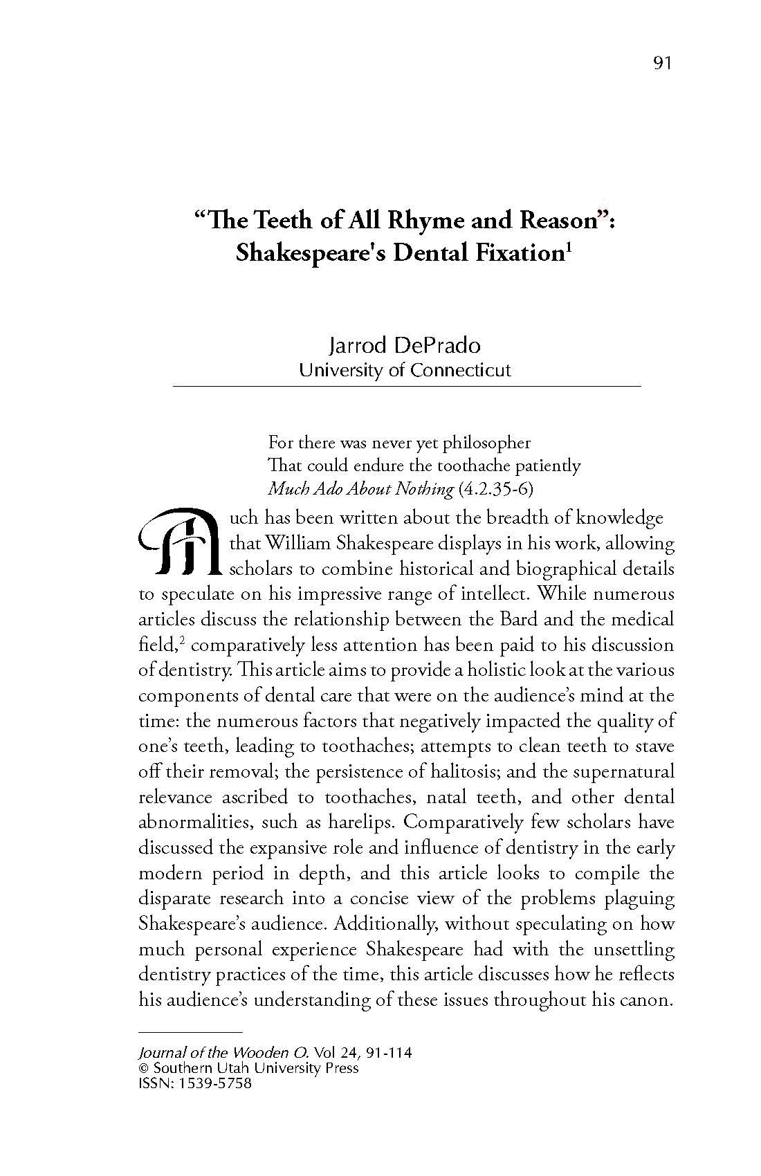 SUBMISSIONS: Manuscripts should follow the Chicago Manual of Style, 17th edition. Manuscript submissions should generally be between 4000-8000 words in length. Please review the JWO Style Sheet, which may be found at https://www.suu.edu/library/wooden-o.html. The deadline for submission is October 17, 2025. Authors should include all of the following information on a separate page with their submission: